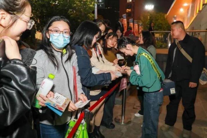 观众排队等候话剧演员签名。